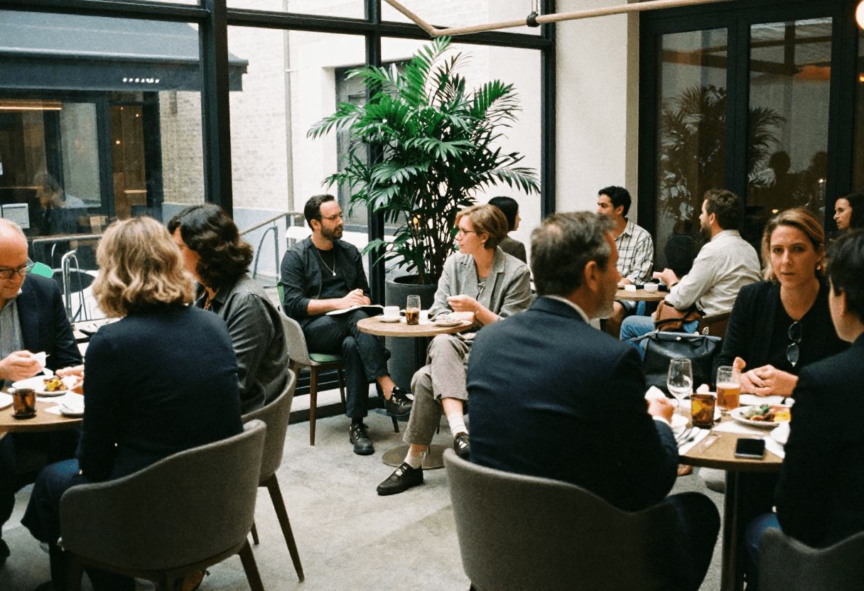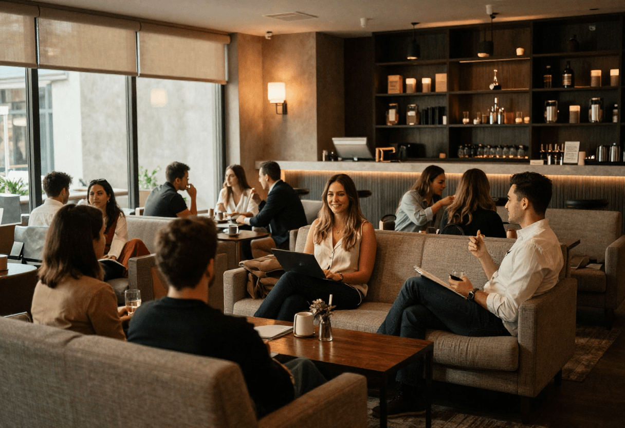 Private networking events and business lounges designed to facilitate high-value conversations, strategic partnerships, and professional growth.